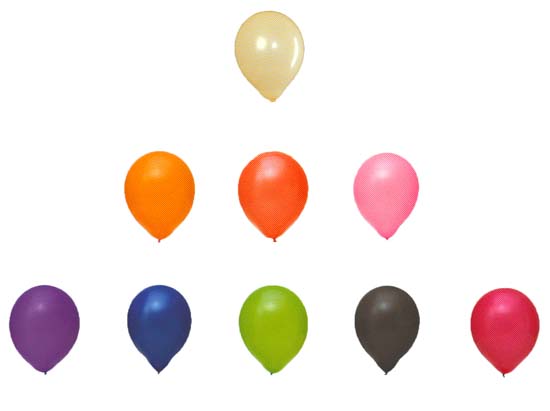 Abschieß-Ballons, farbig sortiert, 40/45 cm Umfang, 14 cm Durchmesser, in 100-Stück-Beutel |