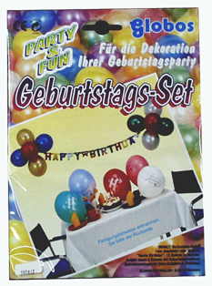 Geburtstags-Set, Buchstabenkette, 12 Ballons in Metallicfarben, sowie 5 Ballons m. Geburtstagsmotiven, Befestigungsmaterial, Deko-Scheiben und Polyband |