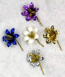 Glänzende Blüte, in silber, weiß und rot |