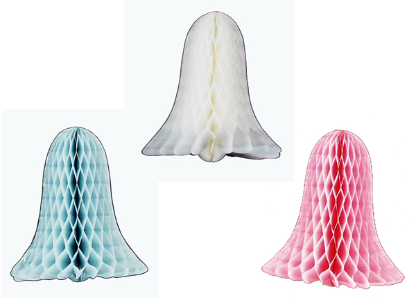Waben-Glocke, ca. 30 cm groß, in weiß, rosa und hellblau |