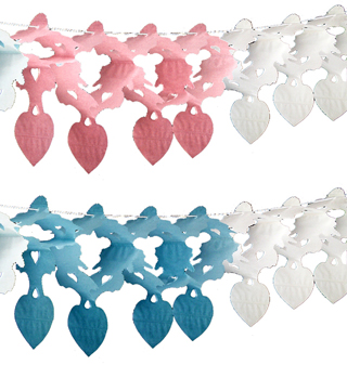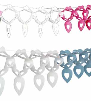 7130 | 49, 60 | Herz-Girlande (Hochzeitsschmuck), ca. 400/10/33 cm groß, in rosa/weiß oder blau/weiß | Stück | 6,00 |