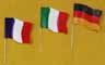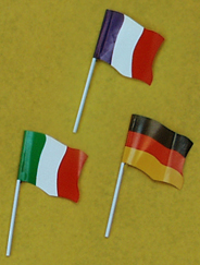 Glanzpapier-Fähnchen, "Frankreich" und "Italien", ca. 16/11 cm groß, an 24 cm langem Plastikstab |