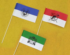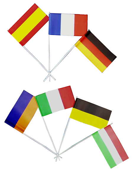 Papier-Fähnchen, 12/24 cm groß, mit 40 cm langem Stab, als zwei- und dreifarbige Staatenfahne |