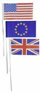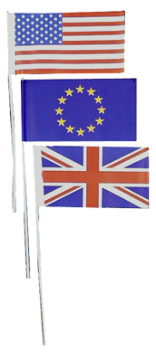 Papier-Fähnchen, 12/24 cm groß, mit 40 cm langem Stab, als mehrfarbige Fahne (z. B.: "Europarat", "USA") |
