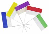 Papier-Fähnchen, 12/24 cm groß, mit 40 cm langem Stab, in rot/weiß, grün/weiß, blau/weiß, gelb/weiß, lila/weiß, schwarz/weiß |