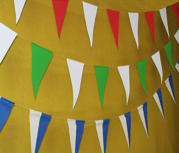 Wimpel-Kette, 10 m lang, mit 40 Wimpeln 16/28 cm groß, aus Papier in bunt oder zweifarbig |