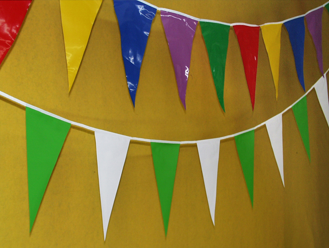 Wimpelkette aus Plastik, 10m lang, 20x30cm groß, in bunt und zweifarbig |