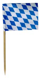 10 Stück Picker mit Bayernflagge, Weiß-Blau rautiert, ca. 30 x 40mm, 80mm Spieß |