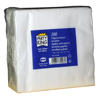 100 Stück Präge-Servietten, schneeweiß, 33 x 33 cm, gefalzt |