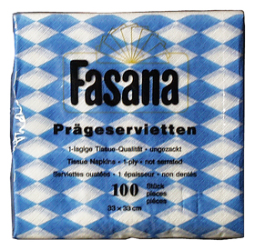 100 Stück weiß/blau rautierte Servietten, 1-lagig, 33x33cm |