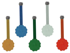Herren-Kontroller, in Rosetten-Form, mit Plastiksteg, in grün, blau und weiß, in Schachteln mit 100 Stück |