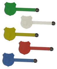 Herren-Kontroller, in Wappen-Form, mit Plastiksteg, in blau, weiß, rot und gelb, in Schachteln mit 100 Stück |