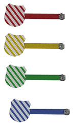 Herren-Kontroller, in Wappen-Form, mit Plastiksteg, in rot/weiß, gelb/weiß und blau/weiß, in Schachteln mit 100 Stück |